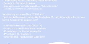 Die Wirtschaftsförderung des Landkreises Tirschenreuth bietet in Zusammenarbeit mit dem Netzwerk Inklusion und der Taskforce Fachkräftesicherung FKS+ am 13.11.2025 ein kostenfreies Webinar an. Unter anderem werden die Themen „Unterstützung bei der Qualifizierung älterer Beschäftigter“ oder „Was wünschen sich erfahrene Mitarbeitende, um im Unternehmen … Weiterlesen